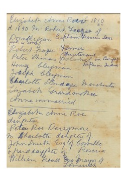 Article Hand written Collie's notes Captain Fraser and 4 sons and marriage of Robert and Elizabeth anne Roe