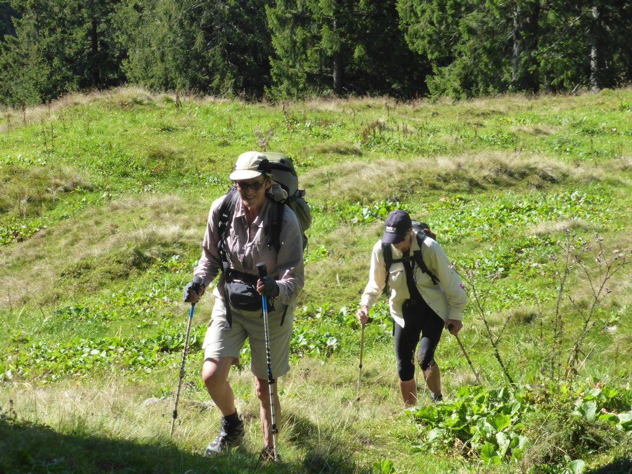 Breakfast is a nice spread of cheeses breads and jams from the buffet counter and the tea and coffee is hot. It's a leisurely wait for the 9.22am bus which we intend to take to avoid the steep 600m descent on the other side of the Klausen Pass down into Urner Boden. Like Swiss Clockwork, the bus leaves at 9.22am with many hikers already on board. The steep zig zag road dropping into the Urner Boden Valley is hair raising, with our bus, cyclists, motor cyclists and sports cars all vying for a piece of road on the multiple sharp corners.