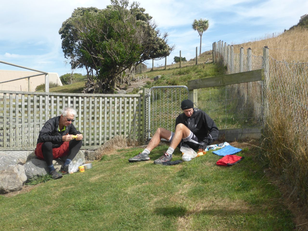 There's just one hill as we near the Taiaroa Head and it's tough going into the wind. Thre's a Visitor's centre at the Heads with a cafe which some of us visit whilst others have peanut paste, thick butter and cheese on a Pam's Rice Cracker - this is a good formula for a European hike - easy - and rice crackers don't weigh much!