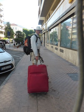 By 8.30am, we're rolling our suitcase down the road to La Poste. It's a stunning day with blue skies and 16°C, but the wind has dropped. The same lady from yesterday is at the La Poste counter. We lock the bag and shrink wrap it with a roll of glad wrap bought in Alba. The bag weighs 22.6kg and after adding Recommandé (sign on delivery), the cost is 29 euro - cheap - IF the bag gets there. We had booked an AirBnB in Paris and our host Michel agreed we could send him our gear for when we arrive in 4 weeks time. It started as one small parcel, then when Graham and Jenny added stuff, two small parcels, then the whole suitcase! Hmm! I hope he'll trundle it the one k to our AirBnB without a wheel falling off.