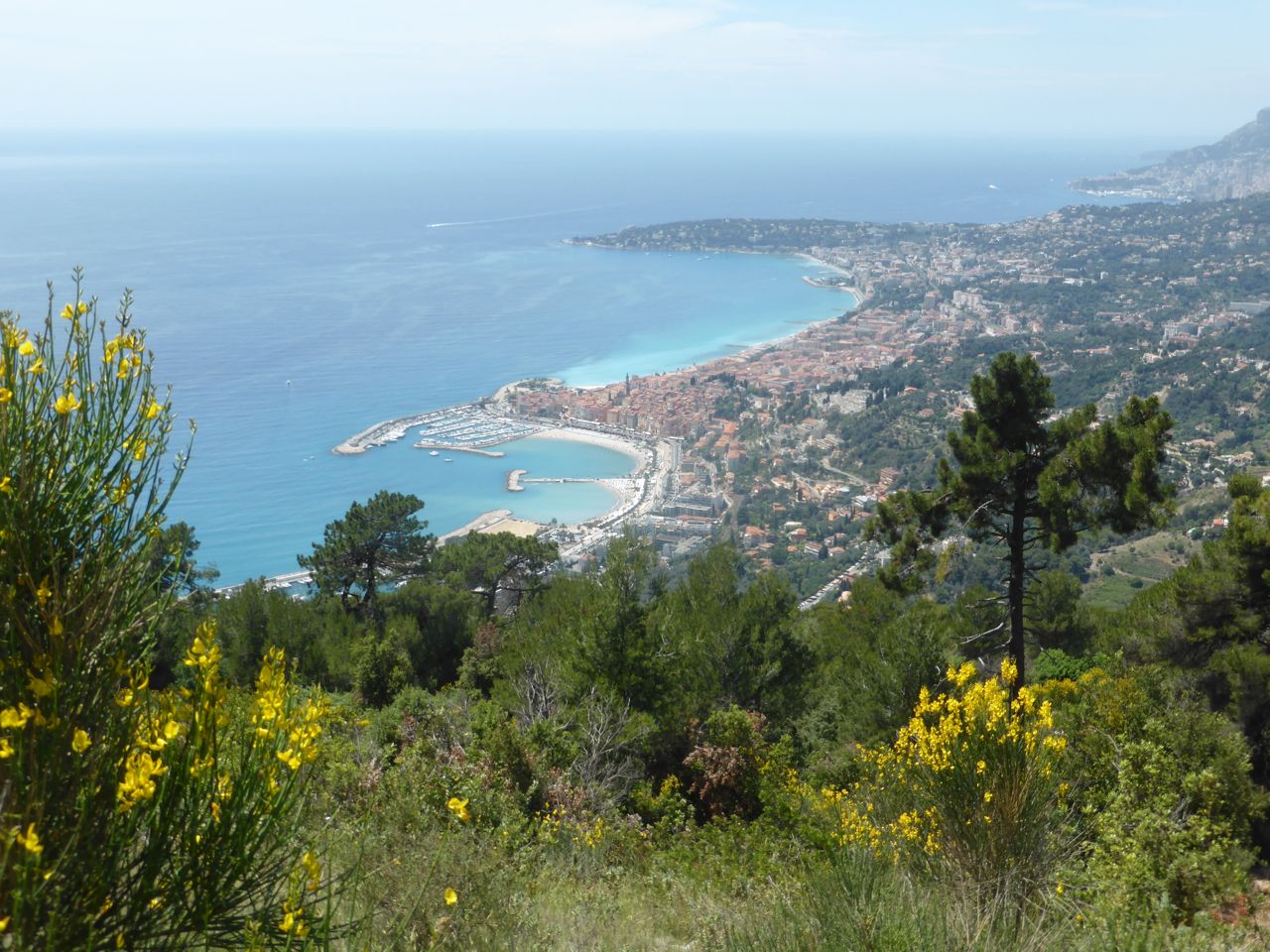 A stunning day hiking up the very steep track from Menton on the Mediterranean Sea to Plan de Lion at 730m, the start of the Maritime Alps. Then down to Castellar at 350m, a village perched on a ledge, with absolutely stunning coastal views from Menton to Monte Carlo and across the Mediterranean Sea.